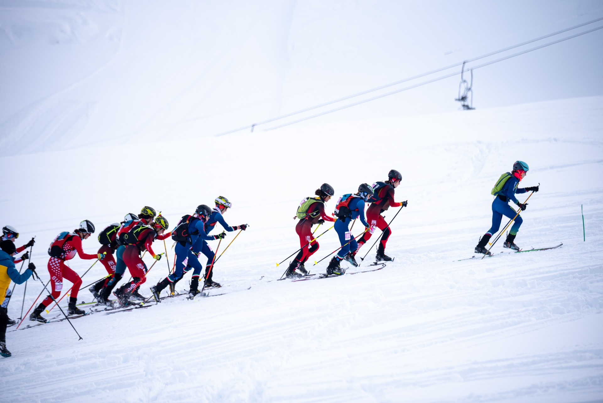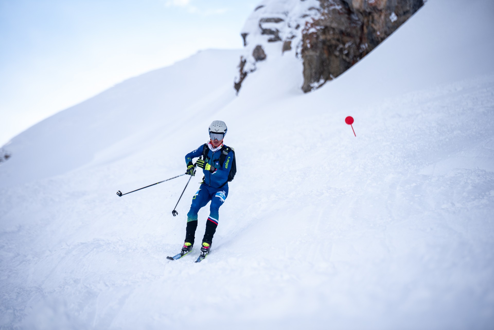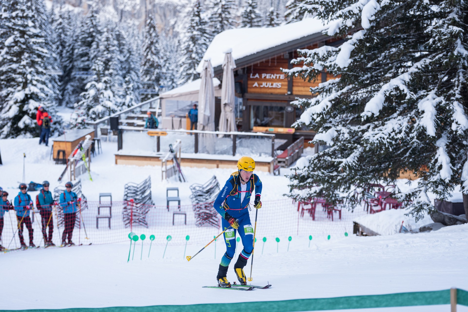 Luka Kovačič med deseterico v članskih mešanih štafetah z Reo Kolbl in 16. v vzponu (foto Skimo Stats)