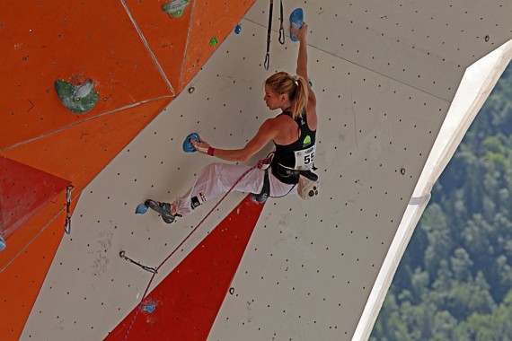 polfinalu je kot edina tekmovalka preplezala smer do vrha, prepričljivo je