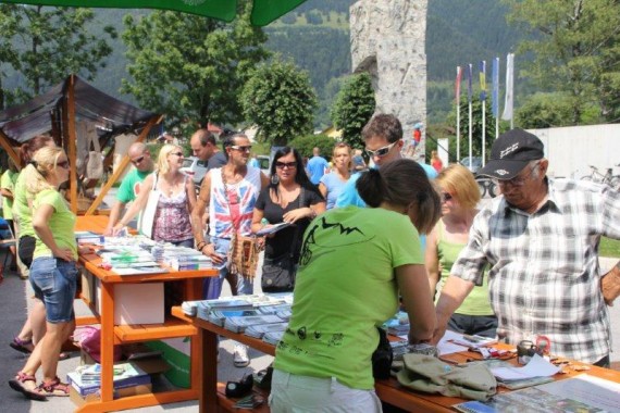 Osrednji dogodek ob Dnevu Alpske konvencije smo pripravili v soboto, 4. avgusta 2012, ko smo organizirali rekreativno kolesarjenje iz Mojstrane v dolino Vrata pod Triglavsko severno steno z geslom »Po alpskih dolinah s kolesom - v dolino Vrata!« in bogat spremljevalni program pri Slovenskem planinskem muzeju. Kolesarjenja se je pod vodstvom turnokolesarskih vodnikom Planinske zveze Slovenije udeležilo skoraj 60 rekreativnih kolesarjev. Večina je se je odločila za daljšo, 11 kilometrsko pot do Aljaževega doma v Vratih, ostali pa za krajšo (4,5 km) možnost do slapa Peričnik. Vsi udeleženci in ostali obiskovalci, ki so kolesarje pospremili na pot, so zelo pozdravili pobudo organizatorjev Dneva Alpske konvencije o prijaznejšem obiskovanju alpskih dolin, tokrat doline Vrata. Predvsem jim je bila všeč za promet zaprta cesta, saj je bila cesta tako namenjena le njim ter naravi prijaznemu in varnemu kolesarjenju v dolino Vrata in nazaj. Kolesarjenja so se udeležili najmlajši, starejši in družine. V dopoldanskem in popoldanskem času so otroci, mali in veliki, lahko v ustvarjalnih in raziskovalnih delavnicah določali drevesa s pomočjo pametnih telefonov, izdelali igro Splezaj na goro in se z njo igrali, spoznali živali in rastline plezališč, reševali nagradni kviz ... Najbolj pogumni, in teh ni bilo malo, pa so se preizkusili tudi v plezanju na umetni plezalni steni pred Slovenskim planinskim muzejem, ki je bil za vse obiskovalce ta dan odprt za brezplačni ogled. Z gorami je tesno povezana tudi planinska in preventivna dejavnost, prav tako pa tudi gorsko reševanje. Letos praznujemo 100-letnico organiziranega gorskega reševanja v Sloveniji, tako so si vsi zbrani, skoraj 150 le-teh, ogledali v steni Grančišča prikaz gorskega reševanja, v Slovenskem planinskemu muzeju pa v več terminih večkrat nagrajeni film Klic z gora. Na prireditvenem prostoru so se na priložnostni tržnici s svojimi pridelki predstavili kmetje širšega območja Julijskih Alp, obiskovalci pa so lahko kupili tudi izdelke domače obrti. Svojo dejavnost so predstavili tudi CIPRA Slovenija, društva za varstvo Alp, Planinska zveza Slovenije, Triglavski narodni park, Turistično društvo Dovje Mojstrana, udeleženci pa so lahko prejeli tudi veliko informacij o Alpski konvenciji. Obiskovalce smo povabili še na Pocarjevo domačijo, Informacijsko točko TNP v Zgornji Radovni, na ogled domačije ter multivizije Za Alpe in novega predstavitvenega filma o TNP. Vsi udeleženci so se strinjali, da je takšnih dogodkov, ki bi opozarjali na trajnostni razvoj turizma, okolja in Alp še premalo, zato smo ob koncu se pozdravili z »Nasvidenje prihodnje leto« ter ta konec tedna na prireditvi Ogenj v Alpah, ki bo opozorila na pomen varovanja in ohranjanja Alp.