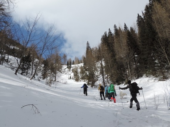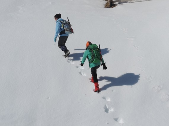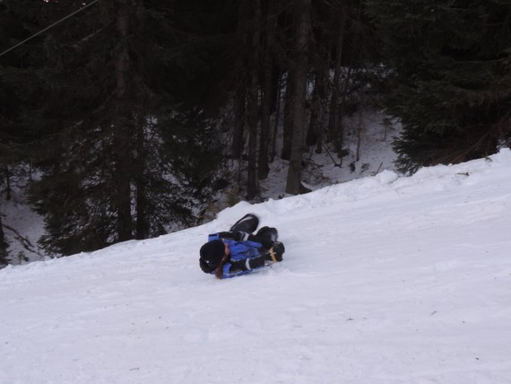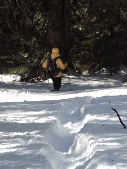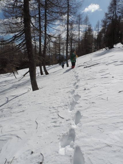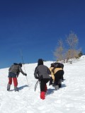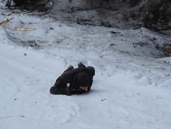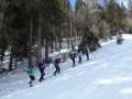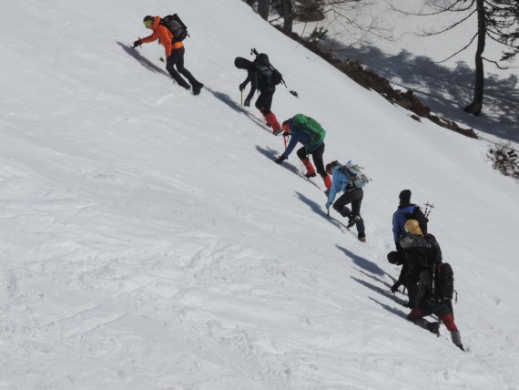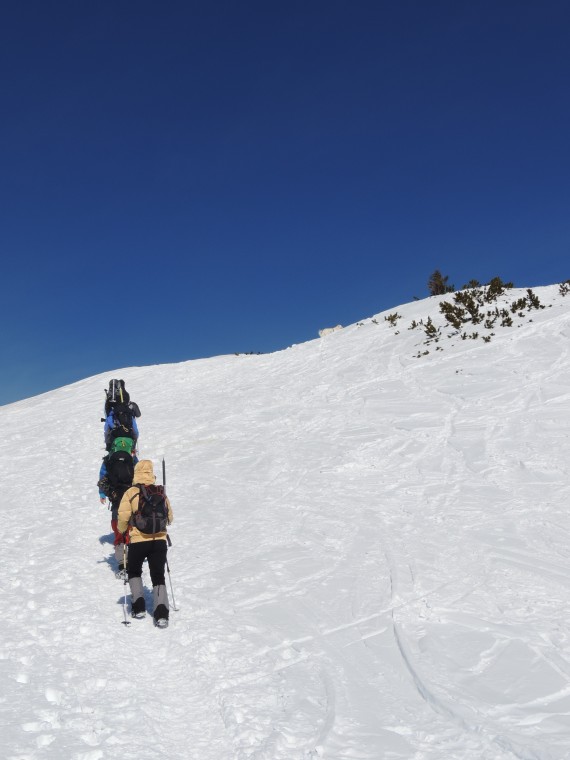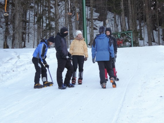 Sinje modro nebo brez oblačka nas je spremljalo vse štiri dni. Opremljeni s cepini in z derezami smo se odpravili na bližnje smučišče, kjer smo se z uporabo obojega učili hoje navkreber in po klancu navzdol. Posebno pozornost smo posvetili tudi zaustavljanju s cepinom. Vrhovi Karavank so se že kopali v zahodnem oranžno rožnatem soncu, ko smo se mi še kar spuščali po klancu navzdol in se skušali čim hitreje ustaviti. Skratka, dan smo izkoristili do konca; ko smo se vrnili v kočo, je bilo nebo že okrašeno s tisoči zvezd. Večer, ki je bil pred nami, je minil v znamenju vozlanja vozlov in ogleda fotografij z zimskih gorskih potepov.