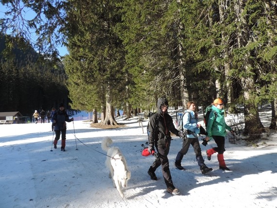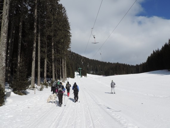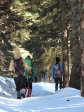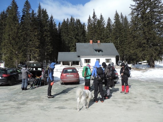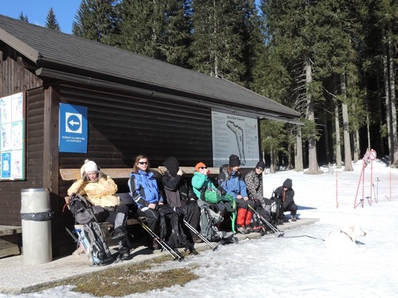 Ja, tako je bilo in kar škoda je, da smo se morali vrniti v dolinski svet. Zimska planinska šola je potekala v osrčju pokljuških gozdov, kamor cestni hrup in mestni vrvež ne sežeta. Tam, kjer se sliši piš vetra, kjer lesket bele podlage blešči v oko, in tam, kjer je nočno nebo polno drobnih zvezd. V koči Planinka se je zbrala druščina dveh organizatorjev, psičke ter sedmih udeležencev. Že takoj po prihodu smo odigrali kar nekaj iger s kartami in zdelo se je, da bodo te zapolnile sleherno minuto prostega časa. Kmalu pa smo se začeli posvečati tistemu, zaradi česar smo prišli - zimski planinski šoli. Da bodo dnevi pestri, je nakazal že »sprehod do Šport hotela« na četrtkov večer. Prelevil se je namreč v triurni nočni orientacijski pohod z utiranjem gazi skozi gozd.