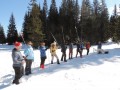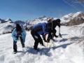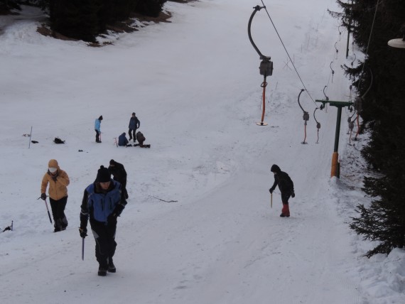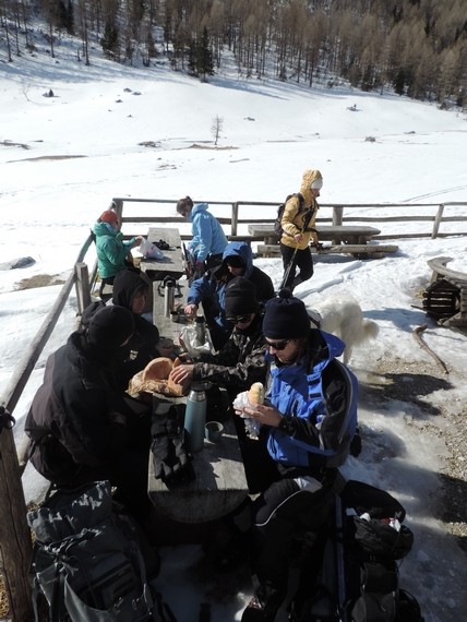 V petek zjutraj smo krenili proti vrhu Plesišče, ga obšli (no, če smo natančni, so fantje dosegli vrh, dekleta smo se mu izognila) in prispeli na prijetno, le nekoliko vetrovno planino Konjščica, kjer smo pojedli s seboj prinešeno hrano. Ko smo tako nekaj časa sedeli ob pastirski staji in uživali v čudovitem okolju pod vrhovi, se kar nismo hoteli odpraviti nazaj v dolino. Ker smo bili sami gospodarji svojega časa, je bila tudi kuhinja v naših rokah in ni nas kaj dosti brigalo, da bomo jedli kosilo v poznih popoldanskih urah. Tekom tečaja se je zvrstilo kar nekaj zanimivih predavanj: orientacija, nevarnosti v gorah, oprema, prva pomoč idr. V soboto sta nas obiskala bohinjska gorska reševalca in nam predstavila iskanje ponesrečenih v plazu. Tako smo potem še velikokrat poslušali piskanje lavinskih žoln, mu sledili do »zasutega« ter ga odkopali.