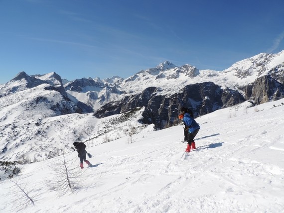 Nedeljsko jutro še ni nakazovalo poti v dolino. Pred nami je bila še ena tura, mimo Blejske koče na Lipanci smo jo ubrali na Mrežce. Po poti navzgor smo skušali utrditi pridobljeno znanje. Del poti smo prehodili s cepinom v rokah, našli smo pa tudi dve žolni, zakopani v snegu. Z osvojenega vrha se je odprl čudovit razgled na Triglav z okoliškimi gorami, pa tudi planinska koča Planika in Triglavski dom na Kredarici sta se nam pokazala. Na drugi strani so se bleščale zasnežene Spodnje bohinjske gore. Ja, res je, da je malica s takšnim razgledom vredna več kot kosilo v dolini. Je kosilo za oči in za srce - dovolj, da je človek srečen.
