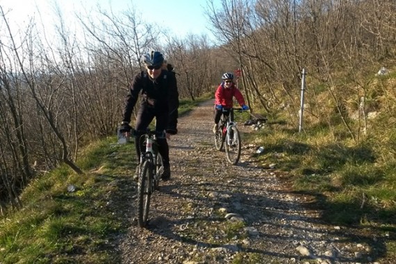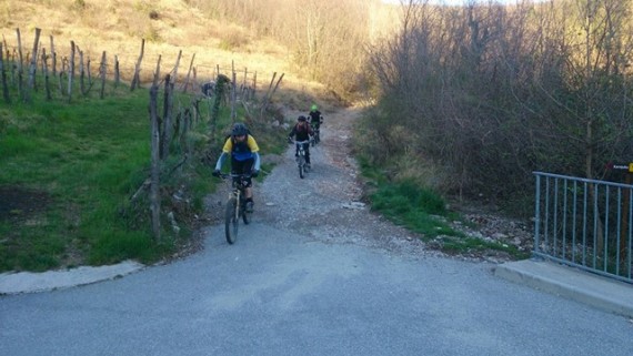 cesti čez Vrtače zavrteli pedala navkreber do Planinskega zavetišča na Koradi