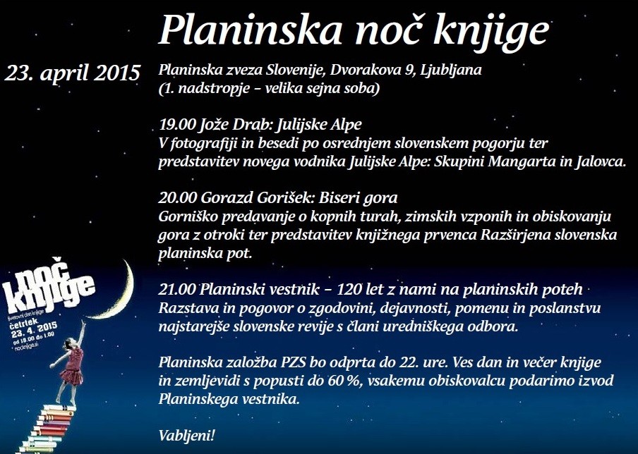 PLANINSKA NOČ KNJIGE – 23. 4. 2015