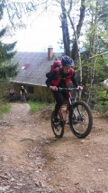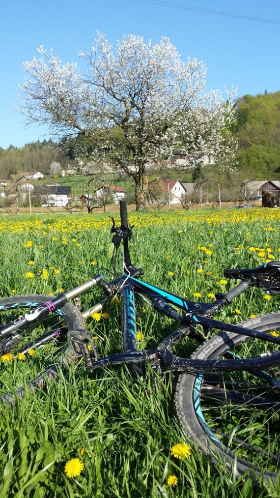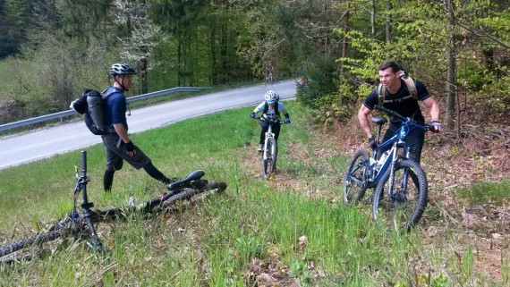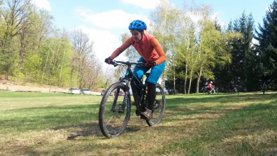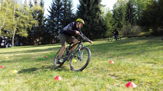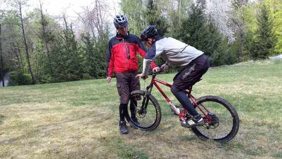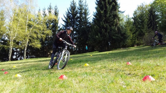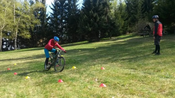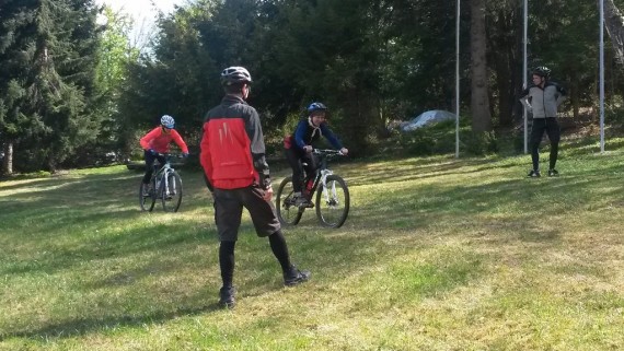 Naš glavni učni poligon je bila jasa pod planinskim domom, kjer je ravno pravi teren za naš tečaj tehnike. Tako smo se spoznali z aktivnim položajem kolesarja, pravilnim zavijanjem, zaviranjem, sestopanjem s kolesa, tisti spretnejši pa tudi s t. i. bunny hopom in front pivotom. Čas je zelo hitro tekel, saj je bilo za večino veliko novega, in sledil je preizkus na terenu. Spustili smo se nazaj do kmetije Močnik in nato dalje po gozdni cesti proti Hruševcu. Vsi smo se strinjali, da je bil ta spust z novo osvojenim znanjem dosti varnejši, bolj pod nadzorom in zabavnejši. Zdaj je seveda treba vse to čim večkrat potrenirati in že čez slab mesec nas čaka nova priložnost, saj se TKO PD Slivnica pri Celju odpravlja na dvodnevno turo po goriških Brdih.