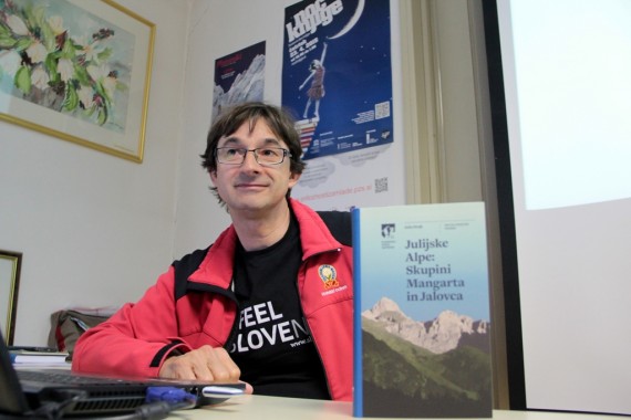 Jože Drab s sveže izdanim vodnikom Julijske Alpe: Skupini Mangarta in Jalovca (foto Manca Čujež)