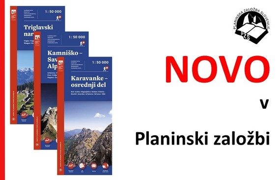 Triglavski narodni park, Kamniško-Savinjske Alpe, Karavanke - osrednji del, so novi plastificirani planinski zemljevidi. Vsi merila 1 : 50.000