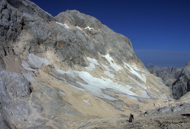sreda, 22. julij 2015, ob 8. uri, ogledov: 6847 Izjemna julijska vročina tali tudi Triglavski ledenikNarava | | | Objavil(a): Manca Ogrin | | Marsikje rekordno visoke dnevne temperature zraka v zadnjih tednih ne prizanašajo niti Triglavskemu ledeniku, ki se pospešeno tali. | Ledenik, natančneje ledeniško zaplato, ki je preostanek nekdaj precej večjega ledenika in leži med 2400 in 2500 metri ter je v neposredni bližini naše najvišje meteorološke postaje na Kredarici, spremljajo že od leta 1946 sodelavci Geografskega inštituta Antona Melika ZRC SAZU. Ob začetku meritev je meril – skupaj z obrobnimi s snežišči – več kot 15 hektarjev, ob koncu lanske talilne dobe (2014) pa le še 3,6 hektarja. Najmanjšo površino 0,7 hektarja pa so izmerili po do sedaj rekordno vročem poletju leta 2003. Od začetka letošnjega leta lahko spremljamo dogajanje na ledeniku tudi prek spletne kamere Triglavski ledenik, ki so jo namestili v okviru projekta Preučevanje slovenskih ledenikov na pomožni objekt Triglavskega doma na Kredarici.