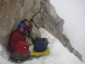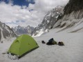 Po počitku smo pretehtali možnosti in skovali načrt za preostalih sedem dni, ki nam jih je ostalo do prihoda nosačev. Kyle je zaradi drugačnosti ciljev odšel domov, Martin in Janez sta se odločila za skalno plezanje v okolici baze, midva z Lukom pa sva se s pomočjo šotora, ki sta nama ga velikodušno odstopila Martin in Janez, odločila, da še enkrat poskusiva v razu Latoka 1. Vremenska napoved je bila relativno dobra, prednost poznanega terena pa se je še kako poznala, zato je plezanje teklo gladkeje in racionalneje. Po prvem bivaku na 5000 metrih sva nadaljevala do vrha skalne stopnje in zaplezala v snežni del, ki naju je pričakal v odličnih razmerah. Drugič sva bivakirala na 5400 metrih, kjer sva našla dobro mesto za šotor. Tudi naslednji dan so stvari tekle gladko, dokler naju okoli poldneva niso obiskale prve snežinke. Nisva se pustila motiti, rekoč "saj bo samo plohica", in v vedno močnejšem sneženju plezala dalje. Bližala se je noč, a mesta za dober bivak ni bilo nikjer na vidiku, "plohica" pa se je razvila v močno sneženje. Naposled sva se zadovoljila s ponujenim in snežni gobi na grebenu na 5900 metrih odsekala vrh, ki je ponudil ravno dovolj prostora za najin šotorček. Utrujena sva popadala v spalki in upala, da se prebudiva v lepše vreme. A žal zjutraj vreme ni bilo dosti boljše, med nočjo pa je zapadlo 20 centimetrov snega. Vedela sva, da je za ta dan napoved malo slabša, hrane in plina pa sva imela dovolj, zato sva se odločila, da počakava in nadaljujeva naslednji dan, ko bi naj sledilo hitro izboljšanje. A sneženju ni bilo videti konca in v peto jutro sva se prebudila v močnem sneženju, svežega snega pa je bilo že skoraj pol metra. Med še enim dnevom čakanja je sneg počasi odnesel še zadnje upe o nadaljevanju, zato sva se odločila, da še po tretjem bivaku na istem mestu sestopiva v dolino. Posledica te odločitve je bila tudi ta, da sva lahko zdaj jedla in pila, kolikor sva hotela, saj sva imela hrane še za štiri dni, med čakanjem pa sva porabo zmanjšala na minimum. Šesto jutro je bilo novozapadlega snega že skoraj en meter, naju pa je čakal sestop čez vseh 38 raztežajev, ki sva jih preplezala, medtem pa je sneg še vedno vztrajno naletaval. Po vseh spustih sva izkopala pod steno puščene palice in sestopila v bazo.