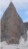 Prvenstvena smer Luke Krajnca in Luke Lindiča v severnem stolp Biacherahi (6050 m) (foto Luka Krajnc)