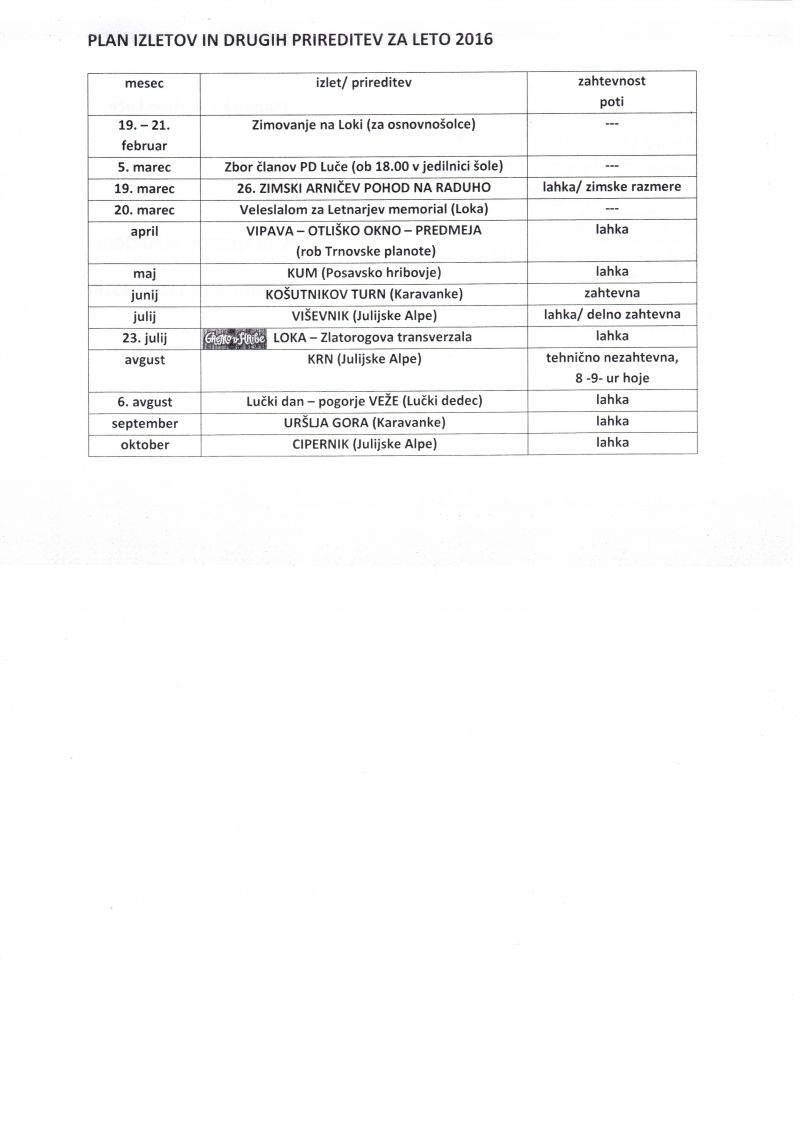 Zbor članov PD Luče bo 5.3.2016 v avli OŠ Blaža Arniča v Lučah.
