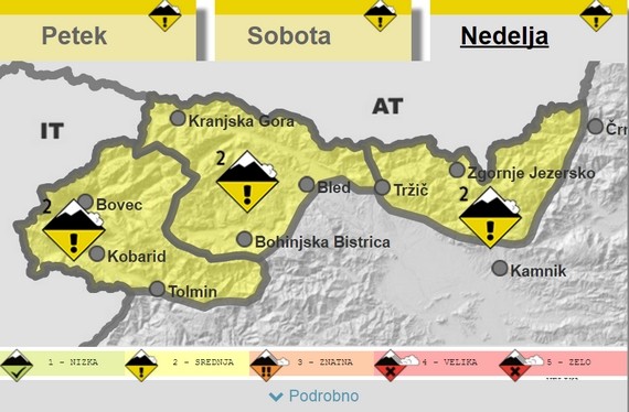 sobota, 9. april 2016, ob 10.30 uri, ogledov: 10369 Agencija RS za okolje (ARSO) z novim, še boljšim, lavinskim biltenomPreventiva | | Komisija za alpinizem | Komisija za planinske poti | Komisija za varstvo gorske narave | Mladinska komisija | Odbor Gore in varnost | Odbor za usposabljanje in preventivo | Vodniška komisija | | | Objavil(a): Matej Ogorevc | | S preteklim tednom je služba za sneg in plazove Agencije Republike Slovenije za okolje uvedla novo obliko in dodatne vsebine Opozorilom na nevarnost snežnih plazov (lavinski bilten). | V biltenu ohranjajo dosedanjo vsebino v tekstovni obliki, dodali pa so kar nekaj novih informacij. Med njimi prav gotovo izstopa nov prikaz stanja in lastnosti snežne odeje različnih slovenskih gorskih območij. Gre za nov način podajanja informacij za območja južnih in zahodnih Julijskih Alp, osrednjih Julijskih Alp in zahodnih Karavank ter Kamniško-Savinjskih alp skupaj z Vzhodnimi Karavankami. Glede na stopnjo nevarnosti snežnih plazov, bodo po potrebi izpostavljena tudi ostala hribovita območja Slovenije.