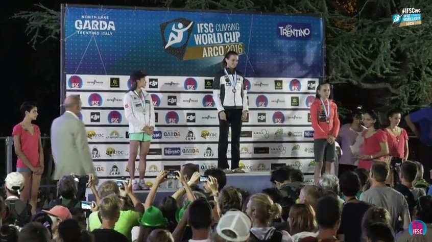 Športna plezalka Janja Garnbret, vodilna v skupnem seštevku svetovnega pokala v težavnostnem plezanju, si je na peti letošnji tekmi v Arcu 27. avgusta 2016 priplezala tretje mesto, ki ga je dodala zbirki treh letošnjih zmag in petega mesta. Prav tako vodilni v skupnem seštevku Domen Škofic je v moški konkurenci dosegel četrto mesto, Mina Markovič, tokrat peta, pa je že drugič prejela tudi nagrado Arco rock legends za najboljše tekmovalne dosežke v pretekli sezoni.
