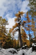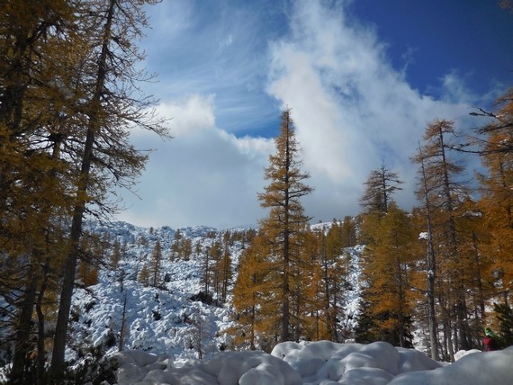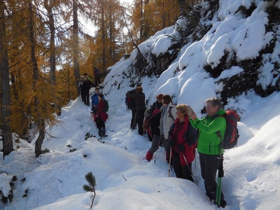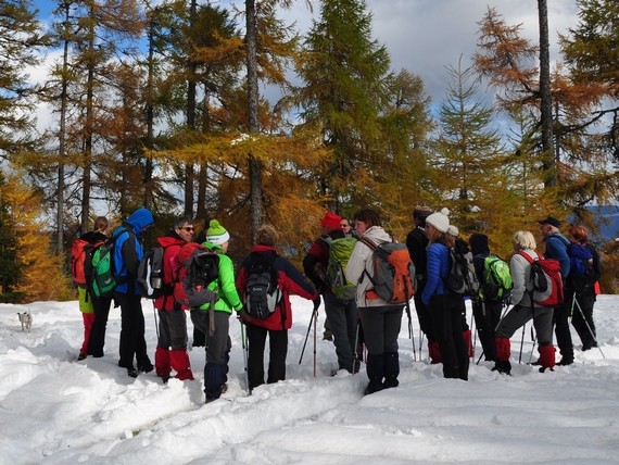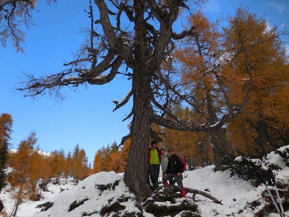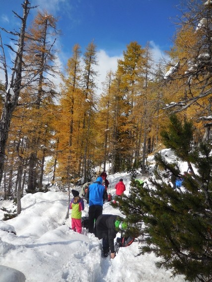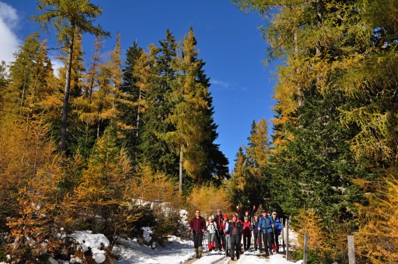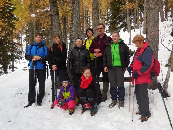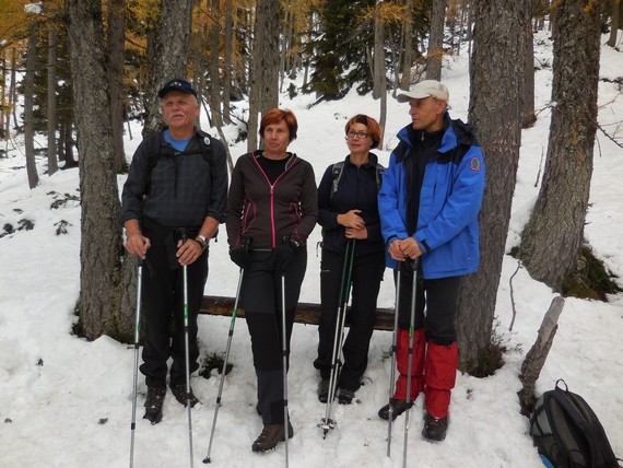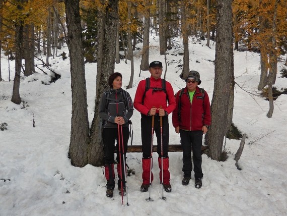 Narava je bila radodarna z motivi, svetlobo in barvami. Vse so nas najbolj očarale zlatorumeno obarvane obrše (krošnje) stoletnih macesnov, ki so žarele v sončni svetlobi. Modrina neba in belina snega sta njihovo pozlato samo še poudarjali, vsaka na svoj način. Oblaki, ki jih je vse močnejši veter začel zganjati okoli vrhov, so poskrbeli za dramatično ozadje. Fotoaparati so postajali vse težji zaradi številnih fotografij. Na najlepšem delu poti smo si v zavetrju gozda privoščili počitek in malico ter se nato po svoji gazi vrnili na izhodišče. Čeprav se ta dan nismo povzpeli na nobenega izmed vrhov, je izlet izpolnil vsa naša pričakovanja.