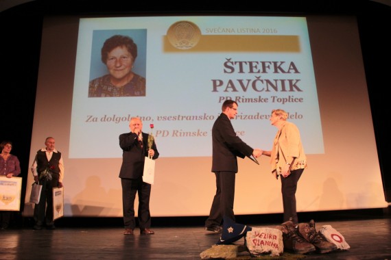 - Štefka Pavčnik (PD Rimske Toplice) za dolgoletno, vsestransko in prizadevno delo v PD Rimske Toplice,