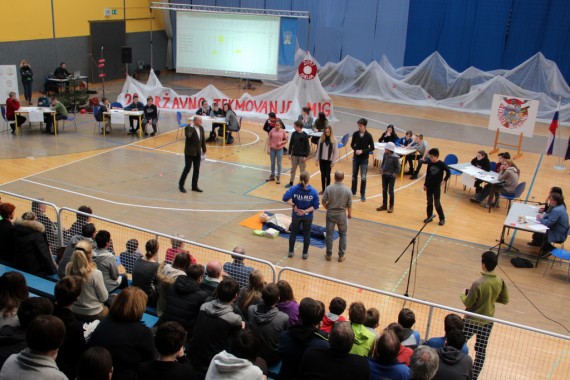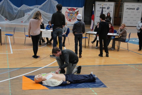 Preverjanje praktičnega znanja iz prve pomoči - uporabe avtomatskega defibrilatorja - v finalnem delu (foto Manca Čujež)