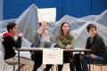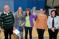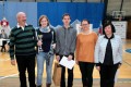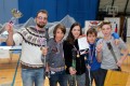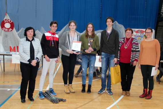 Prve tri idrijske ekipe na srednješolskem tekmovanju Mladina in gore z mentorjem Nacetom Breitenbergerjem, načelnico Mladinske komisije PZS Barbaro Bajcer in koordinatorico tekmovanja Brigito Čeh (foto Manca Čujež)