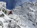En dan sva se bolj malo premaknila od šotora, po tem pa sva imela en res dober dan v hribih. Opravila sva dva prva zimska vzpona na vrhova v skupini vrhov Mt Slesse. Na tem območju se je do zdaj pozimi gibalo le približno 10 ljudi, resnih poskusov plezanja pa ni bilo. Zaradi vremena je plezanje tukaj precej podobno plezanju na Škotskem, le da so stene nekajkrat višje.
