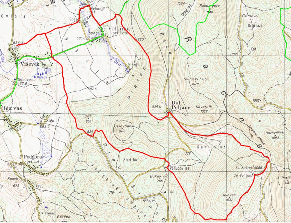 torek, 14. marec 2017, ob 9.45 uri, ogledov: 5168 V Loški dolini odprta nova planinska potPoti | | Komisija za planinske poti | | Planinsko društvo Snežnik v Loški dolini | | | Objavil(a): Matej Ogorevc | | V Občini Loška dolina so jeseni 2016 domači markacisti pripravili in pri Planinski zvezi Slovenije tudi registrirali prvo planinsko pot na tem območju. V naravi gre za krožno pot na Gornje Poljane, najvišje ležečo vas v občini. Za pot skrbijo markacisti PD Snežnik Loška dolina. | Do njih se povzpnemo iz izhodišča na parkirišču pri cerkvi Marijinega Vnebovzetja v Viševku, kjer je tudi izhodišče za Racno goro (1140 m). Krožna pot na Gornje Poljane se potem dejansko prične na prvem križišču poljskih poti, kot nam kažejo smerne table. V desno nas pot vodi mimo Andrejeve stopinje, ki je po legendi nastala tedaj, ko je Sv. Andrej pomagal pri vleki voza, naloženega z zvonovi za cerkev na Gornjih Poljanah.