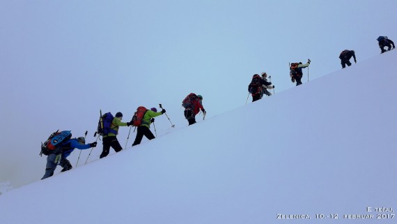 Tečaja za vodenje zahtevnih snežnih tur za planinske vodnike kategorije E, ki je potekal med 10. in 12. februarjem, se je udeležilo 8 udeležencev.