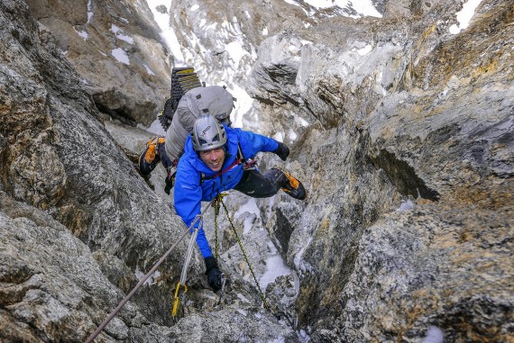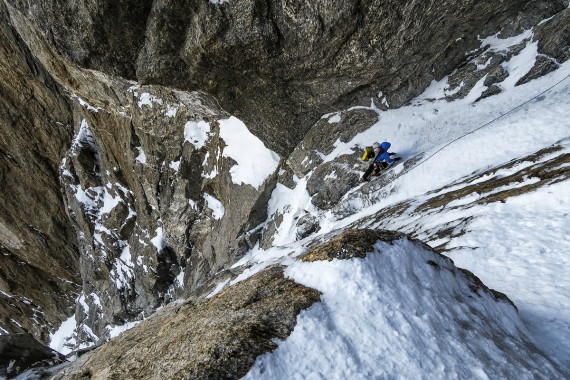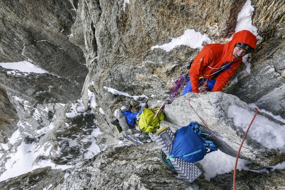 Po dnevu zahtevnega plezanja, zaznamovenega s snežnimi plazovi, in prvi v steni preživeti noči je bil pred alpinisti najzahtevnejši del vzpona. "Naslednji