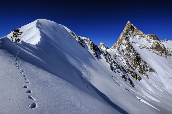 Zadnji strmejši raztežaj drugega dne plezanja na Arjuno (foto Marko Prezelj)