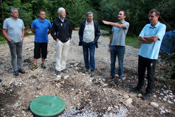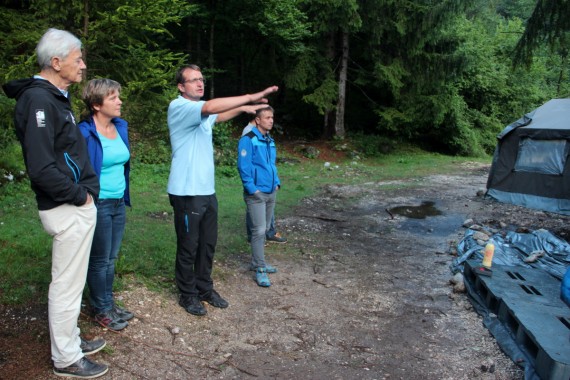 Trak ob odprtju vzorčnega tabornega prostora v Mlačci so prerezali Jaka Peternel, Bojan Rotovnik, Barbara Bajcer in Bogdan Janša (foto Manca Čujež)