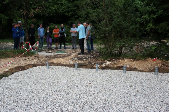 desni strani ceste iz Mojstrane proti Kotu in Krmi, je PZS začela urejati leta 2016 in ga zaključila letos kot primer vzorčnega tabornega prostora za izvedbo