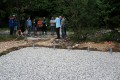 igrišče za odbojko, ob prostoru je balvan z opremljenimi