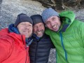 Napade me vročina (povišana telesna temperatura), Tomaž in Matjaž pa ne popuščata in odneseta vsak svoj nahrbtnik, poln opreme, (nista bila lahka) na zgornji plato ledenika Rangtik in tam odložita opremo. Sestop v dolino nam res dodobra napolni baterije, in ko grizemo v breg nazaj proti baznemu taboru, slutimo, da smo zdaj tisti pravi. Matic in Tomaž se sicer ubadava z običajnimi težavami starostnikov (bolečine v križu, pogosto uriniranje itd.), Matjaž pa kar poka od energije. Ko ga zavohajo jaki, ki so med našo odsotnostjo naselili bazni tabor, jo brž ucvrejo nazaj v dolino. Deževen dan nas malo ohladi, naslednji pa je brez dežja in odpravimo se proti Chakdor Ri (6193 m, aka H8). Noč na ledeniku pod steno je udobna, poslušamo glasbo, jutranje meglice pa soncu preprečujejo, da bi nas ogrelo. Žreb je določil vrstni red vodenja naveze. Bili smo pogumni in imeli srečo (tudi pri žrebu). Plezanje začnemo po snežni rampi, ki se s strani izteče v jugovzhodni raz gore, tam, kjer sva poskusila že lani z Nastjo. Po 100 metrih se preobujemo v plezalke in pod previs pospravimo čevlje, dereze in cepine. Prvi dan plezanje ni težko, težki so le naši nahrbtniki. Popoldan je v znamenju izdelave izravnave za udobno bivakiranje, poskusa rehidracije naših teles in filozofiranja. Na višini približno 5850 m si uredimo bivak. Naslednji dan čakamo, da sonce ogreje skalo in nas. Danes smo opremo skrbno izbrali; 24 metuljev, set zatičev, 10 klinov, 5 litrov pijače, vsak svojo puhovko, teniske, čelke, v žepe zatlačimo nekaj energetskih ploščič, navežemo se na dvojno vrv, vzamemo še nekaj kompletov in zank ter začnemo plezati. Matjaž dobro vleče raztežaje. Plezanje je resno, a prijetno. Prehode iščemo na desni (gor gledano) strani raza. Brez obotavljanja zmerno napredujemo. V glavnem se držimo poči, včasih pa potegnemo tudi čez plošče, kjer je treba malo več zbranosti, saj je tam varovanje slabše. Okoli petih popoldan smo na vrhu. Opravili smo prvi pristop na Chakdor Ri (6193 m, aka H8). Ko smo zadovoljni (in zaskrbljeni obenem) gledali okoli sebe, nismo bili prepričani, ali stojimo na najvišji točki gore, saj je vršni greben precej horizontalen, ozek, a ne težak. Ker nas je zajelo poslabšanje vremena z močno statično elektriko in sneženjem, se nismo ukvarjali s tem, kateri skalni blok v vršnem grebenu je morda 5 m višji od našega stojišča, v skalni mostiček smo privezali rdečo molilno zastavico, ki nam jo je v ta namen dal Lobsang, ter vso energijo usmerili v sestop. Veter je bil vse močnejši, sneženje pa vse gostejše. Spuste po vrvi smo urejali na (gor gledano) levi strani raza in do večera dosegli bivak, kjer nas je čakal šotorček, elektrika je pa tudi popustila, ko smo izgubljali višino. Ali je res? Naslednje jutro smo v oblačnem vremenu in rahlih padavinah nadaljevali s spusti po vrvi do vznožja stene. Na zgornjem platoju ledenika Rangtik smo si na ramena naložili še nekaj opreme in sestopili vse do baznega tabora. Treba je bilo le še izbrati ime smeri. Predlogi, kot so Šarlatans from Balkan ali pa Rolling stones spoznajo moje starše ali Only Lovers Left Alive so povsem nekorektni in neprimerni, zato se odločimo za Treasure of Zanskar. Višina smeri 750 m, splošna ocena ED+, v skali od III do VII- (po UIAA težavnostni lestvici), sneg in led do 55 stopinj naklonine. Plezali smo od 31. 7. 2017 do 2. 8. 2017 (vrh 1. 8. 2017). Vzpon je bil seveda opravljen v alpskem slogu. Matjaž in Matic sva celotno smer preplezala prosto (na pogled oz. flash), Tomaž pa na dveh mestih A0. Varovanje smo v glavnem urejali z zatiči in metulji, na vzponu pa smo zabili tudi 5 klinov, ki jih nismo izbili. Spuste smo v glavnem urejali na skalnih rogljih, nekaj pa jih je tudi na klinih, metuljih in zatičih. Sledilo je nekaj dni počitka v baznem taboru.