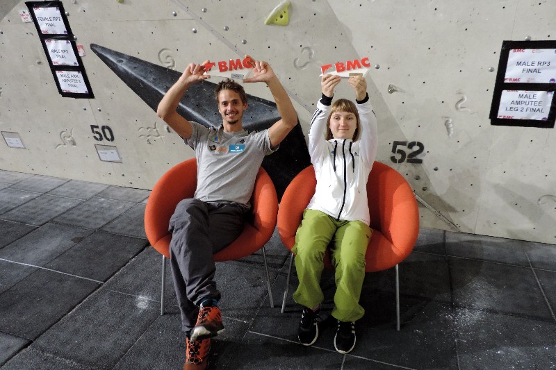 Gregor Selak in Tanja Glušič v finalni smeri tekme svetovnega pokala v paraplezanju Edinburg 2017 (foto Urh Čehovin)