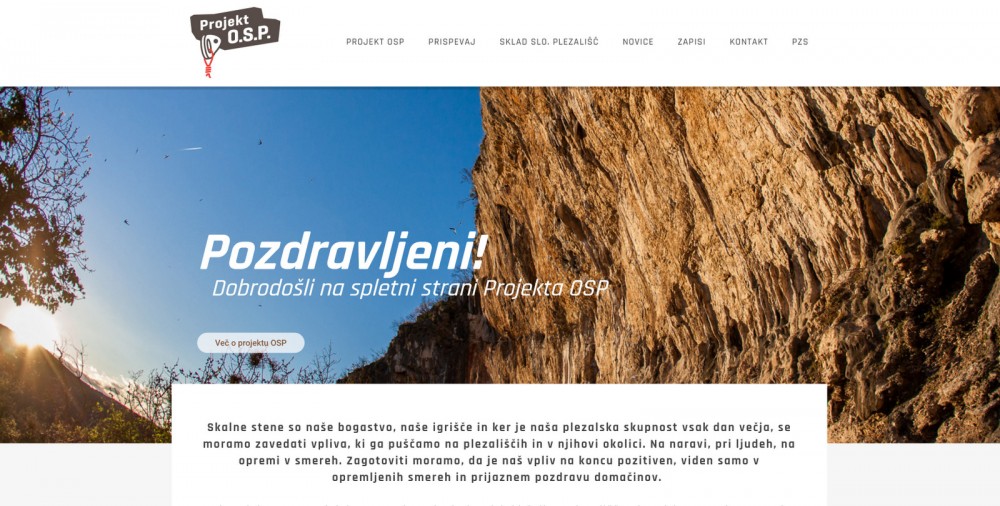 petek, 29. september 2017, ob 10.20 uri, ogledov: 2400 Projekt OSP - prihodnost za naša plezališčaŠportno plezanje | | Komisija za športno plezanje | Komisija za alpinizem | | | Objavil(a): Manca Ogrin | | Začetek projekta OSP ali Opremimo slovenska plezališča je nov mejnik za naša plezališča! Gotovo eden pomembnejših, saj ponuja možnost trajne rešitve problemov z dotrajano opremo, težav z lastniki in urejenosti plezališč. | Projekt OSP nagovarja vse obiskovalce slovenskih plezališč k aktivni udeležbi pri skrbi za plezališča in k donacijam za Sklad slovenskih plezališč, ki bo prevzel nalogo preopremljanja in urejanja plezalnih smeri in plezališč v Sloveniji. Nadzor nad stanjem opreme v smereh, načrtno, kakovostno in strokovno opremljanje smeri, reševanje težav z lokalnimi skupnostmi bodo zagotovili ohranitev in nadaljnji razvoj plezališč in predvsem brezskrbne plezalne užitke tudi v prihodnosti.
