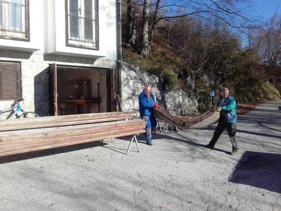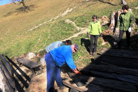 Ena večjih akcij je potekala tudi v torek, 31. oktobra, ko se nas je na Lisci zbralo šestnajst »reformatorjev«. Po jutranjem okrepčilu smo si razdelili delo in zavihali rokave. Dame so očistile celotno območje od skrajnega zahodnega roba Lisce do t.i. Male Lisce, moški pa smo se lotili fizično težjih opravil. Pospravili smo stare dotrajane klopi, ki so jih obiskovalci Lisce raznosili na razne točke po območju Lisce, odstranili smo neuporabljene koše za frizbi golf, požagali in odstranili odvečno grmičevje nad asfaltiranim igriščem, popravili koše za odpadke pri piknik prostorih ter z zaščitno barvo prebarvali vse tri piknik prostore. Prebarvali smo tudi ograji nad asfaltiranim igriščem in ob otroških igralih. Nekatere manj dotrajane klopi smo razžagali za drva, pri spravilu so po čiščenju pomagale tudi dame, bolj dotrajane klopi pa smo zakurili skupaj z odvečnim grmičevjem. Na priljubljenih razglednih točkah na vrhu Lisce in na njenem zahodnem vrhu smo namestili nove klopi. Odstranili smo dotrajana ležišča in uredili skladiščne prostore v garažah nekdanje depandanse. V Jurkovi koči smo nadaljevali z sanacijskimi deli v sanitarijah, umivalnici in tuširnici. Razšli smo se zadovoljni in veseli, da smo z izvedbo akcije zopet pripomogli k lepšem izgledu, uporabnosti in čistoči naše Lisce za vse obiskovalce, ki so tudi med akcijo v zelo velikem številu prišli na Lisco.