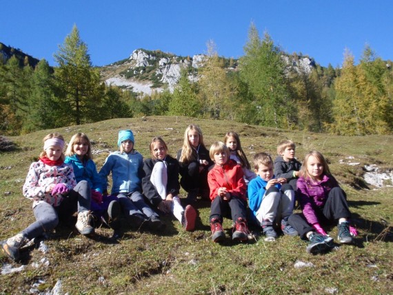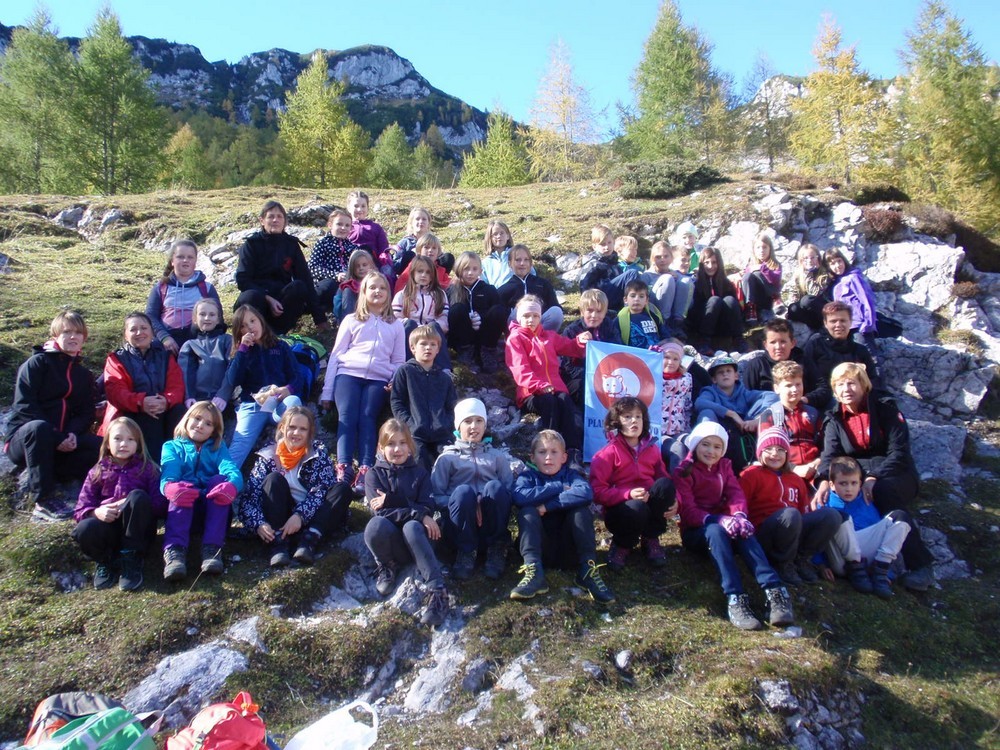 Vodniki Tomaž Š., Zinka L., Branka R., mentorice Majda T., Melita B., Nadja O. ter Polonca K. smo letos izbrali zopet novo destinacijo - kraško planoto v Julijskih Alpah, Pokljuko. Zgodaj zjutraj, 7. 10. 2017, smo se odpravili z otroki (bilo jih je kar 63) do naše izhodiščne točke, do hotela Jelka na Pokljuki, kjer smo bili prijetno presenečeni nad ambientom in samo nastanitvijo. Otroci so komaj čakali, da si izberejo sostanovalce in se razporedijo po sobah hotela. Dopoldne smo si ogledali okolico hotela, prepoznavne lesene planinske koče, pašno živino in čudovito zeleno travnato in gozdno pokrajino. Po kosilu smo se odpravili na prvi višinski pohod. Z mlajšimi planinci smo dosegli Blejsko kočo na Lipanci (1633 m), s starejšimi pa Debelo peč (2014m). Vreme je bilo idealno za ta letni čas, razgled pa čudovit... Pohodniki, ki smo jih srečevali, so bili vidno presenečeni nad takšno množico mladih, zagnanih planincev in vsi so le-ta intuziazem pozdravili ter nas pohvalili. Po večurni hoji smo se vrnili v hotel, kjer smo v družbi našega predsednika PDK z velikim zanimanjem poslušali predavanje profesorja biologije in kemije g. Dragota Klenovška o zaščitenih malih živalih. Ob tem smo se lahko vsi zamislili o našem odnosu do vsega živega. Po večerji so sledile različne delavnice: učenje vezanja vozlov, likovna delavnica, kjer so si otroci lahko izdelali lesen obesek z markacijskim znakom. V mirnem kotičku smo lahko prisluhnili mentoričinem branju in pripovedovanju legend. Seveda pa ni manjkal tudi nočni pohod z lučkami, ki je za otroke vedno nekaj posebnega.