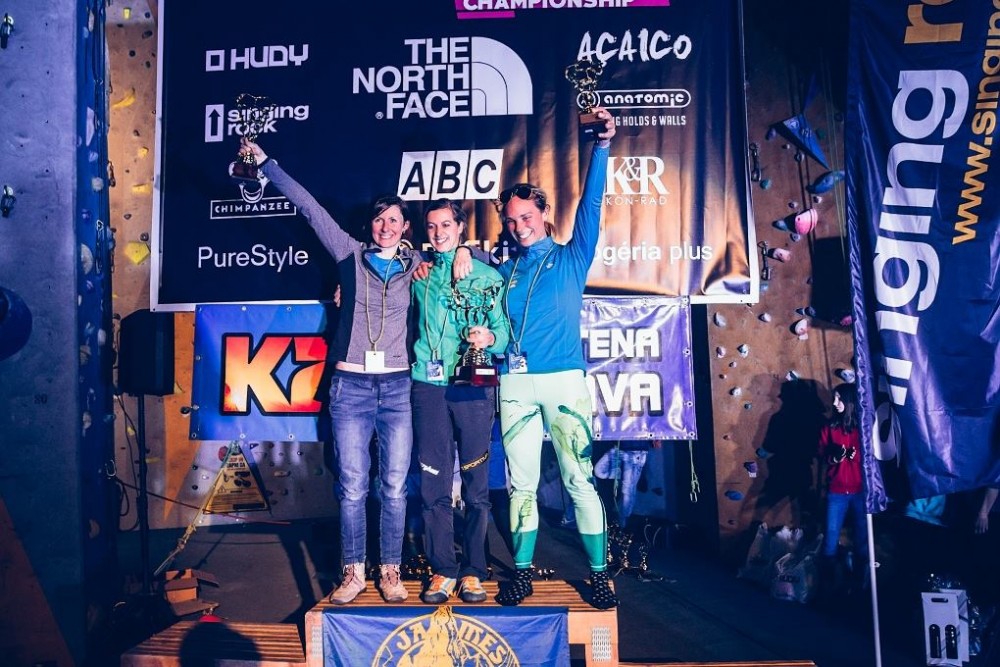 Najboljše tekmovalke na tekmi evropskega pokala v Bratislavi: drugouvrščena Maja Šuštar, zmagovalka Angelika Rainer in Marianne van der Steen na tretjem mestu. (foto Marek Švantner)
