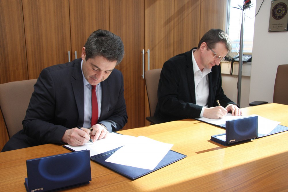 V. d. generalnega direktorja policije Simon Velički in predsednik Planinske zveze Slovenije Bojan Rotovnik po podpisu načrta dela za leto 2018 (foto Nina Djordjević)