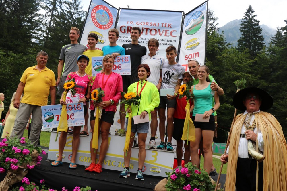 ponedeljek, 30. julij 2018, ob 9. uri, ogledov: 4186 Nejc Kuhar in Mojca Koligar kralj in kraljica GrintovcaGorski športi | | Komisija za gorske športe | | | Objavil(a): Manca Ogrin | | V nedeljo, 29. julija 2018, so vse poti gorskih tekačev vodile na - Grintovec, že 19. prizorišče najslovitejšega slovenskega gorskega teka. Kralj Grintovca je znova postal Nejc Kuhar, tesno mu je sledil Luka Mihelič, oba sta člana slovenske reprezentance v tekmovalnem turnem smučanju, kraljica pa novinka Mojca Koligar. | Nejc Kuhar, mojster vertikal kilometrov, kralj Triglava, nekdanji domačin iz sosednje doline Kokre, je slovenski rekorder teka na najvišji vrh Kamniško-Savinjskih Alp s časom pod magično mejo uro in dvajset minut. V letu, ko tekmovanje ni štelo za svetovni pokal in zato mednarodna konkurenca ni bila tako izborna, je bil v vlogi prvega favorita in jo je iz Kamniške Bistrice do vrha Grintovca (2558 m) opravičil s časom 1,25:33. V soparnem vremenu mu je najbolj tesno sledil Luka Mihelič, tretje mesto pa je pritekel državni prvak Timotej Bečan. Pod mejo ure in pol je tekel le še Gašper Bregar. Simonu Aliču to že ni več uspelo. Na večni lestvici najhitrejših tekov (osebnih rekordov) se je Mihelič s 64. povzpel na 38. mesto.