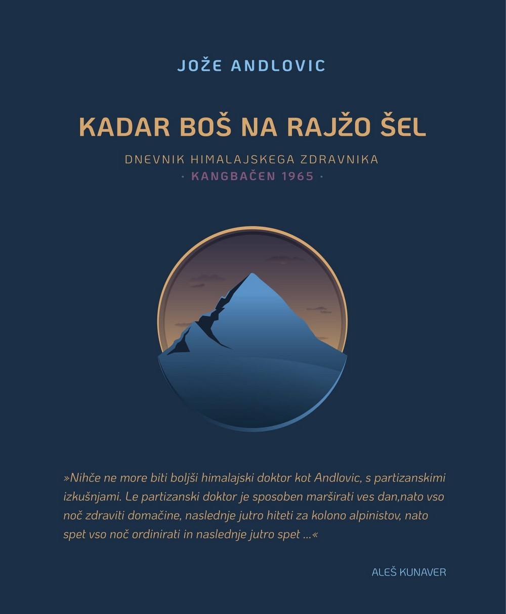 Naslov knjige, Kadar boš na rajžo šel, nas spominja na staro slovensko ljudsko pesem in najbolje povzame občutja tistih, ki ob odhodu fantov in mož na alpinistično odpravo, polni pričakovanj, upanj in dobrih želja za njihov srečen povratek, ostajajo doma. Tudi ob slovesu članov II. JAHO na Kangbačen leta 1965 ni bilo nič drugače. Odhod je pomenil dolgotrajno, tri- do štirimesečno odsotnost himalajcev od njihovih najdražjih ter odrezanost enih in drugih od vsakodnevnih vesti, razlog več, da kljub silni odločnosti doseči oddaljeni cilj, ostaja v podzavesti tudi nekaj sentimenta. Kadar boš na rajžo šel - dnevnik himalajskega zdravnika Jožeta Andlovica |