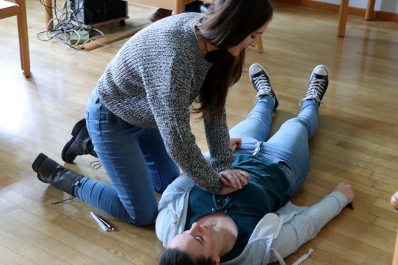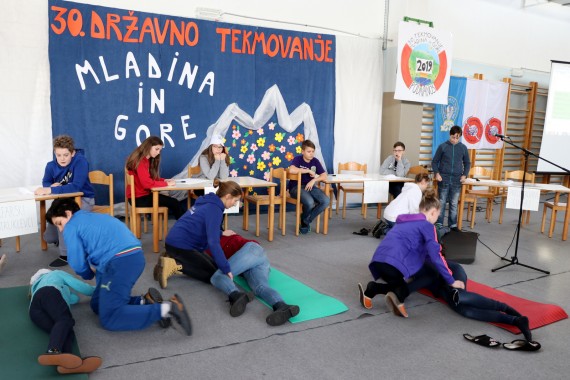 Preverjanje praktičnega znanja iz prve pomoči - položaj za nezavestnega - v finalnem delu tekmovanja (foto Manca Čujež)