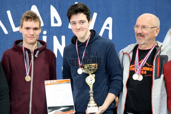 V srednješolski konkurenci znova nepremagljivi Idrijci z mentorjem Nacetom Breitenbergerjem na čelu (foto Manca Čujež)