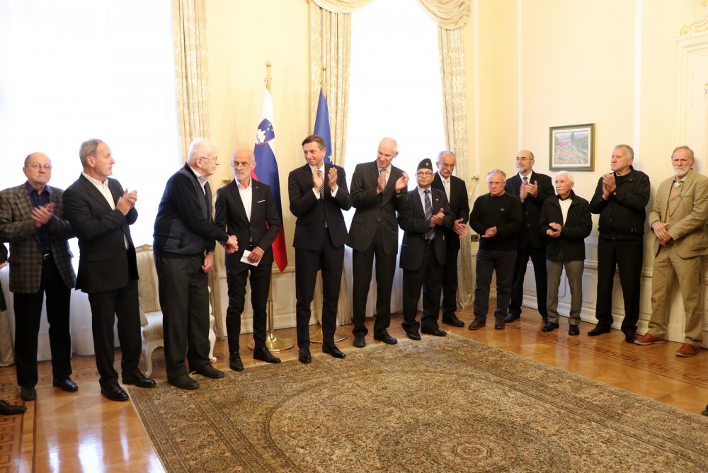 Predsednik Republike Slovenije Borut Pahor je ob 40. obletnici vzpona na najvišjo goro sveta sprejel člane alpinistične odprave Everest 1979 in predstavnike Planinske zveze Slovenije (foto Manca Čujež)