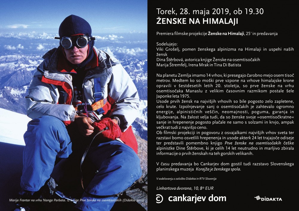 sobota, 18. maj 2019, ob 9.30 uri, ogledov: 1957 Ženske v Himalaji | premiera filmske projekcijeAlpinizem | Planinska kultura | | Komisija za alpinizem | | | Objavil(a): Matej Ogorevc | | Usode prvih žensk na najvišjih vrhovih so bile pogosto zelo zapletene, celo krute. O ženskem himalaizmu na premieri filmske projekcije Ženske v Himalaji, v torek, 28. maja 2019 ob 19:30 v Linhartovi dvorani Cankarjevega doma. |