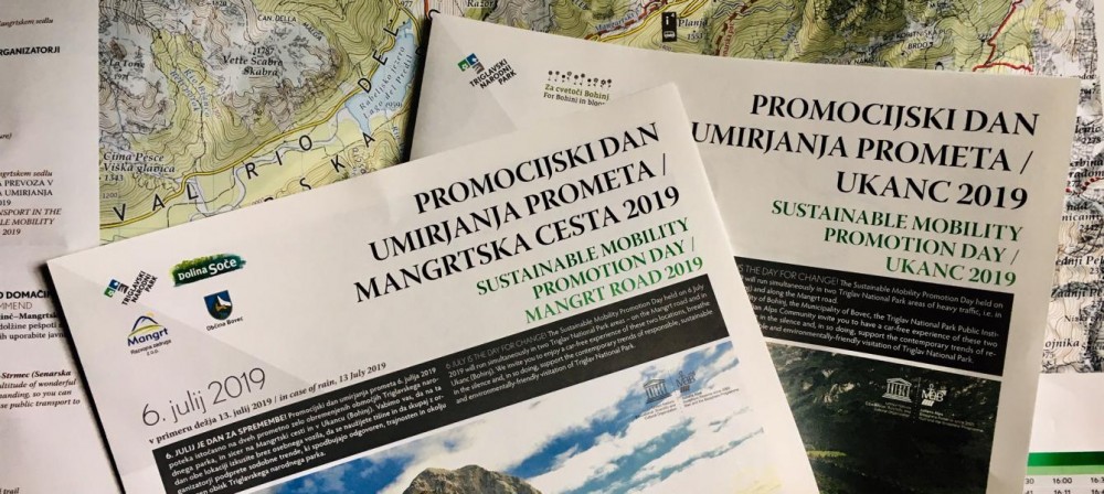 Promocijski dan umirjanja prometa 6. julija 2019 poteka istočasno na dveh prometno zelo obremenjenih območjih Triglavskega narodnega parka, in sicer na Mangrtski cesti in v Ukancu (Bohinj).