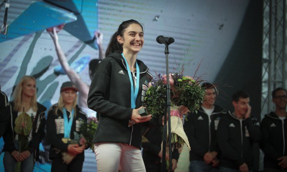 plezalka, ki je ubranila naslov svetovne prvakinje v balvanskem