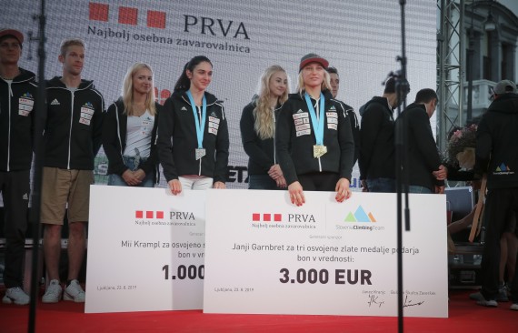 Slovenska reprezentanca v športnem plezanju s trikratno svetovno prvakinjo Janjo Garnbret in svetovno podprvakinjo v težavnosti Mio Krampl na čelu se je domov vrnila v petek, 23. avgusta, ko jo je najprej čakal sprejem pri ministru Pikalu, nato novinarske obveznosti in zvečer nepozaben sprejem navijačev pred ljubljansko Mestno hišo.