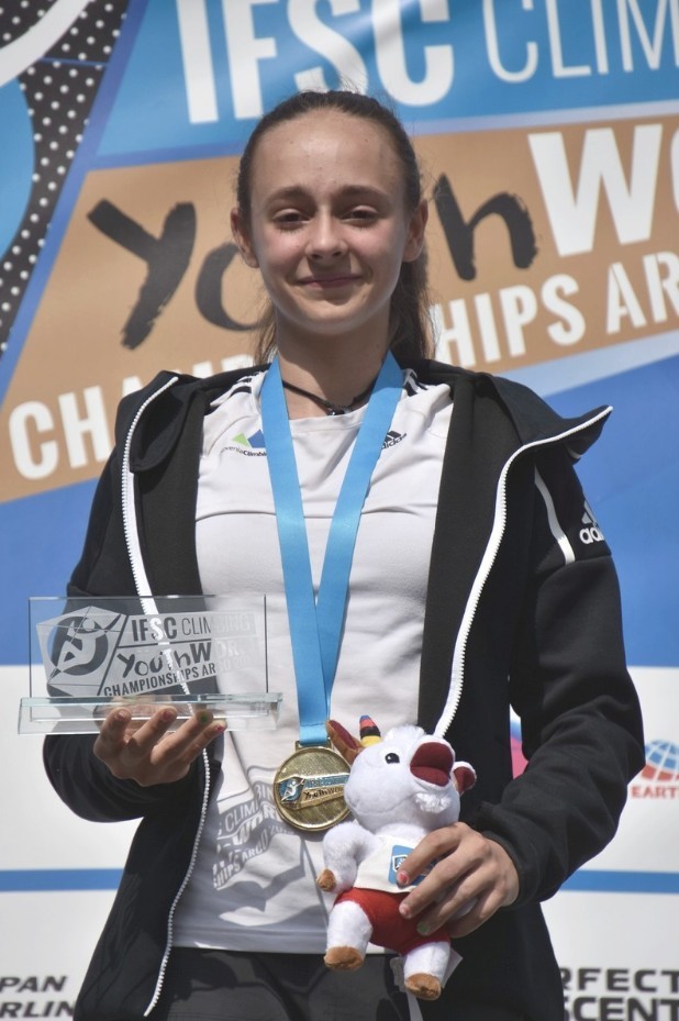 torek, 3. september 2019, ob 11. uri, ogledov: 2270 Sara Čopar mladinska športnoplezalna prvakinja v olimpijski kombinacijiŠportno plezanje | | Komisija za športno plezanje | | Planinsko društvo Celje - Matica | | | Objavil(a): Matej Ogorevc | | Italijanski Arco je med 22. in 31. avgustom gostil svetovno mladinsko prvenstvo v športnem plezanju. Na njem se je predstavilo kar 18 slovenskih plezalk in plezalcev, med katerimi rezultatsko izstopa 14-letna Sara Čopar, ki je po preplezanih smereh v disciplinah težavnost, balvani in hitrost osvojila prvo mesto v skupnem seštevku vseh treh disciplin – t.i. olimpijski kombinaciji. | Sara Čopar, članica športnoplezalnega odseka Planinskega društva Celje - Matica, si je zmago priplezala z osebnim hitrostnim rekordom v disciplini hitrost. 15-metrsko standardno postavitev je prvič preplezala pod 10 sekundami, kar ji je odprlo vrata do naslova najboljše mladinske olimpijske kombinatorke v kategoriji starejših deklic (starost 14 in 15 let). Zlato si je tako priplezala s skupnim petim časom v hitrosti ter z devetim mestom v težavnosti in dvajsetim v balvanih.