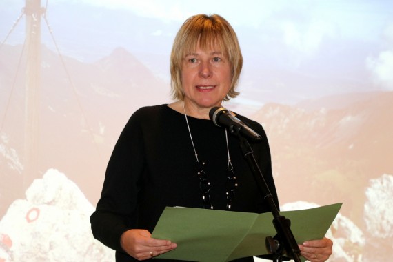 govornica nagovorila generalna sekretarka Alpske konvencije Alenka Smerkolj, ki je izpostavila neprecenljiv prispevek PZS ter njenih članov in prostovoljcev za doseganje ciljev Alpske konvencije: "Športna