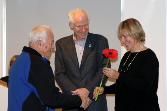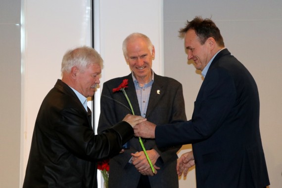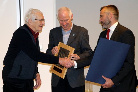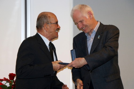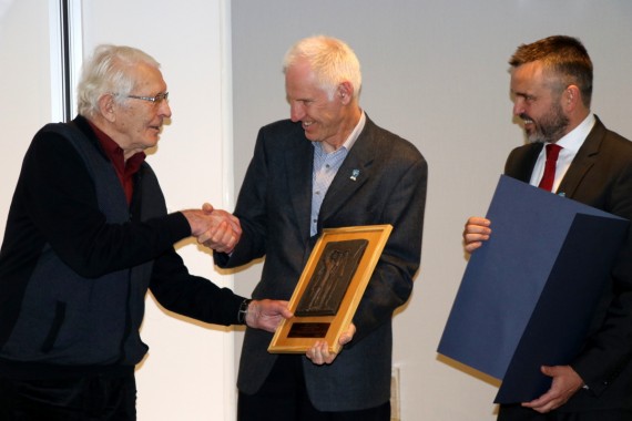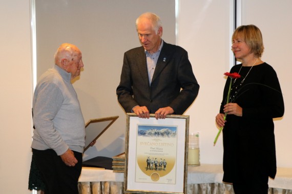 častni član PZS Tone Škarja, sotvorec slovenske himalajske zgodbe, z generalnim sekretarjem PZS Matejem