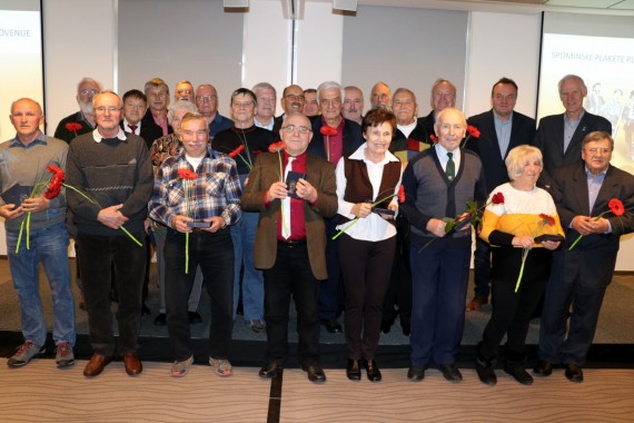 Prejemniki spominskih plaket PZS 2019 ob življenjskih jubilejih s predsednikom PZS Jožetom Rovanom in županom Občine Laško Francem Zdolškom (foto Manca Ogrin)